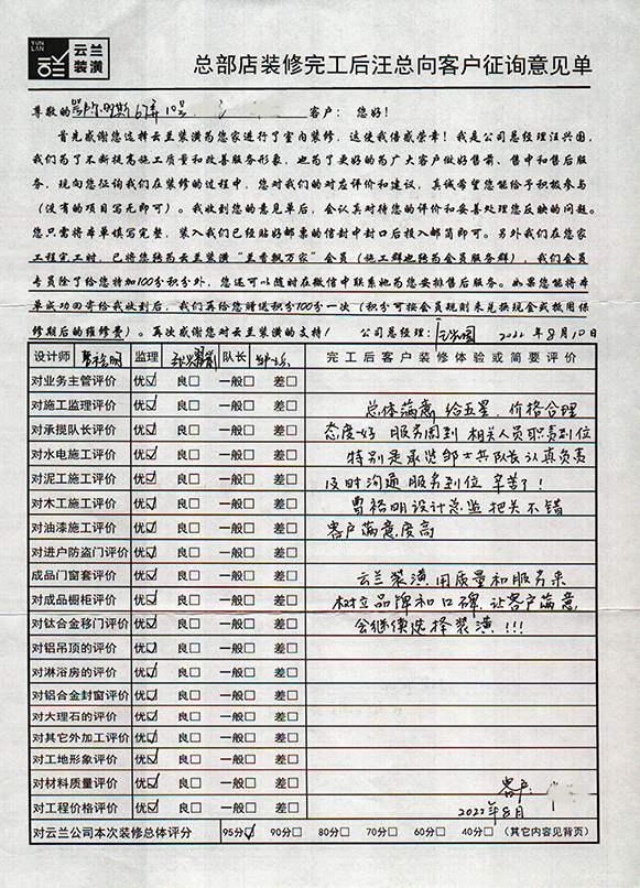 8. 客戶完工評價(鄂爾多斯路67弄10號)