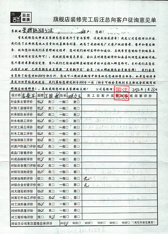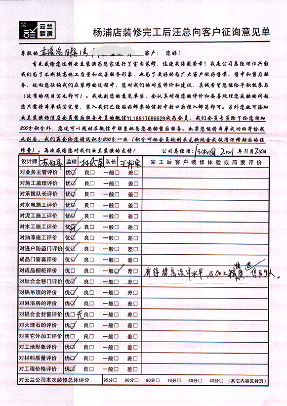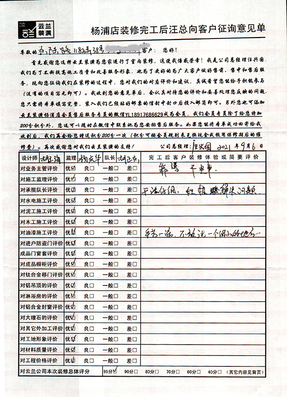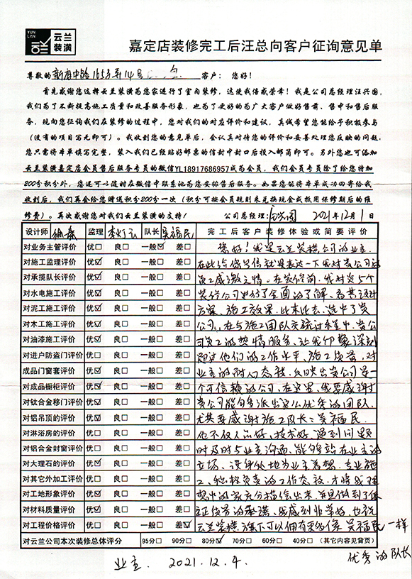 17. 客戶完工評價(嘉定區云谷路599弄3幢)