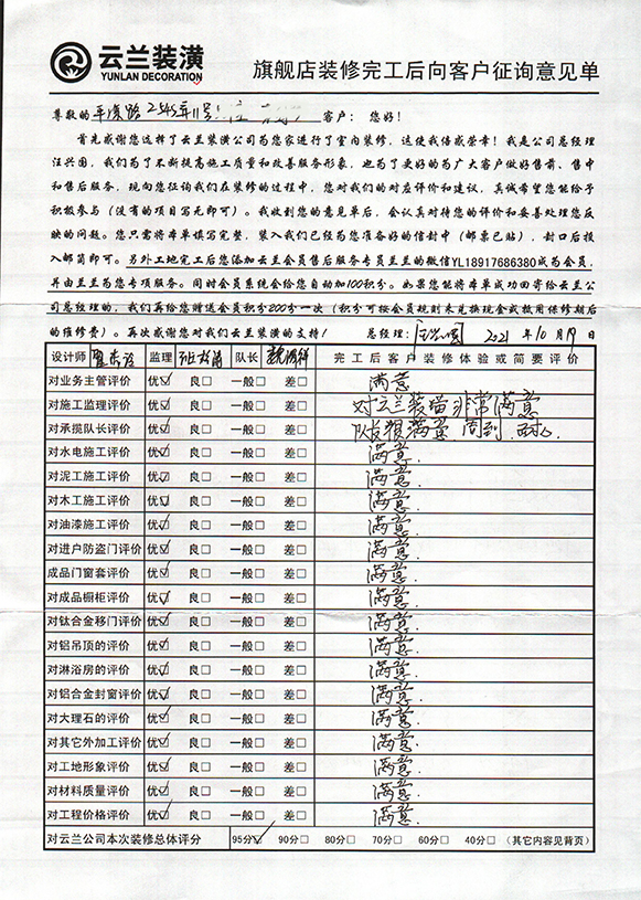 4. 客戶(hù)完工評(píng)價(jià)(康文路330弄10號(hào))