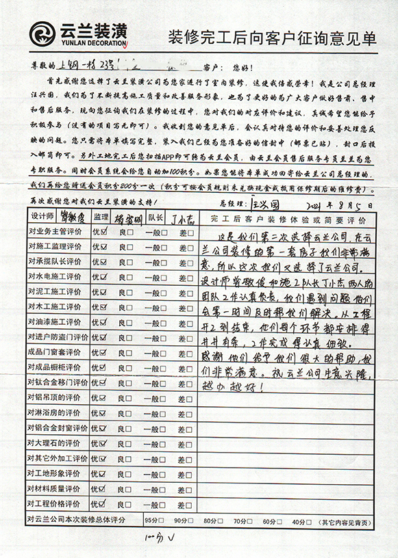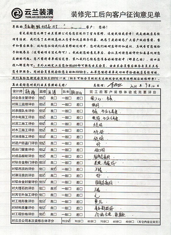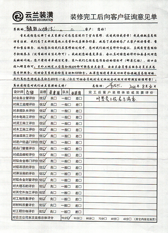 8. 客戶(hù)完工評(píng)價(jià)(眉州路135弄21號(hào))