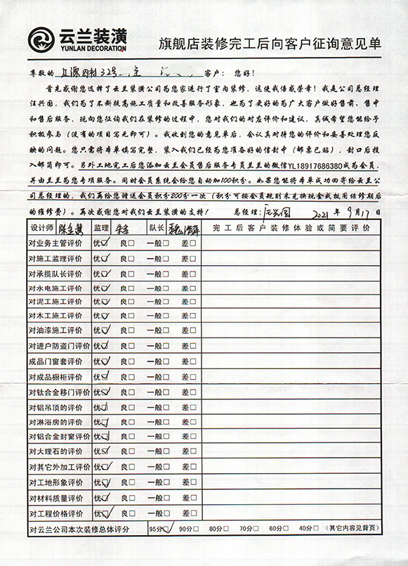 3. 客戶(hù)完工評(píng)價(jià)(保德路94弄3號(hào))